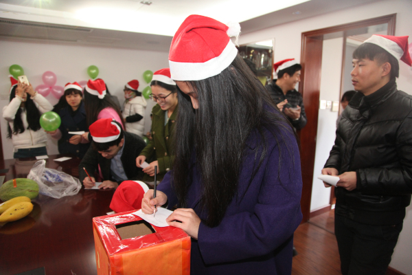 本次活动设有送“祝福”、“心有灵犀”竞猜、猜数字、百味生活等多个趣味性的互动游戏,并设有电热盒、U盘、雨伞等多种多样的精美实用的奖品。同时,活动期间,还有各类水果、精致点心可以享用。各部门员工积极报名,踊跃参加活动,浓浓的圣诞气氛让大家不亦乐乎。