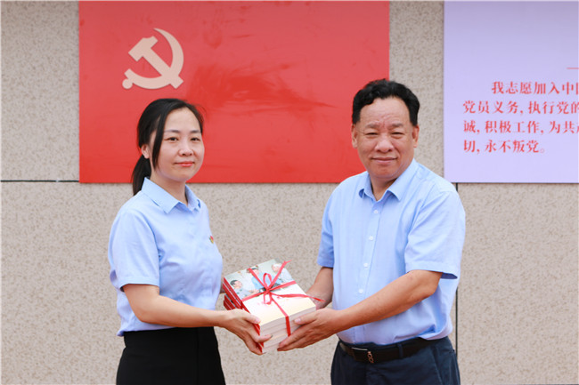 揭幕仪式后,全体党员参观初心阁,感悟红色印迹。在初心阁顶层,叶萍书记带领全体党员重温入党誓词,牢记入党宣誓时的庄严承诺和坚定信念,并表彰2022年优秀党员,号召全体党员、入党积极分子坚守初心,勇担使命。
