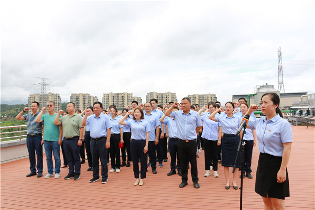 丽水经济技术开发区管委会副主任刘高深、中国医药物资协会常务副秘书长李锦全、副秘书长/研究院执行院长代航、副秘书长/单体药店分会秘书长李广军、协会党支部副书记孙平,hth体育网董事长刘忠良携高管团队、党员骨干、入党积极分子出席仪式。公司党委副书记朱婷主持仪式。