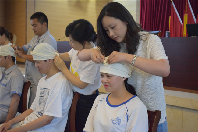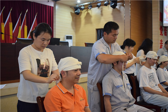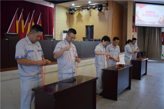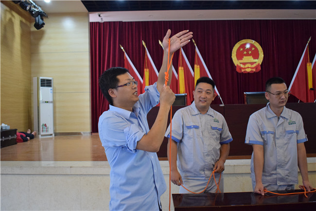 “你来双渔人,我来八字返穿,快!”、“头巾包紧点,动作要到位”、“加油,我们能行~”……6月26日下午,hth体育网安全技能大比武在南明山街道文化礼堂举行,来自公司各部门的12支代表队参与角逐。比赛项目包括三角巾头部包扎、打双渔人结和八字返穿结、单人心肺复苏术等常见安全技能,兼具实用性和趣味性,旨在寓教于乐,以赛促学。
