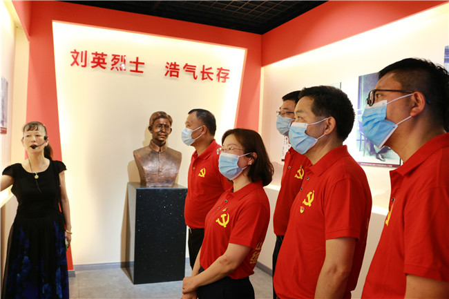 在月光山烈士陵园粟裕同志纪念碑前,全体党员整齐列队,向纪念碑深情鞠躬深切缅怀粟裕将军,并在鲜红的党旗下重温入党誓词,以此追思缅怀这位为革命理想浴血奋战的英雄。一段段红色记忆和历史,激励着每一位党员干部牢记历史,不忘初心,砥砺前行。