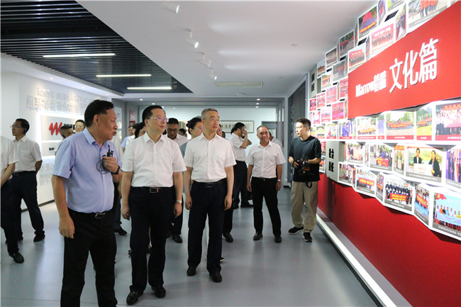 2022年7月22日上午,衢州市委书记高屹,市委副书记、市长徐张艳,市政协主席方健忠携衢州市党政代表团一行莅临hth体育网调研指导,丽水市委书记胡海峰,市委副书记、市长吴舜泽,市政协主席任淑女,市人大常委会副主任沈根花,丽水经济技术开发区管委会副主任刘高深、陈磊等领导陪同调研。hth体育网董事长刘忠良、董事会秘书朱婷等热情接待。
