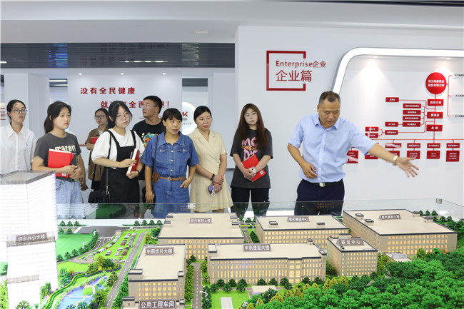 执行总裁吴建明带领大家参观了公司展示中心和维康中药博物馆,介绍了公司发展情况和未来规划,表示hth体育网正处于快速发展阶段,可为公司职工提供了广阔的发展平台,欢迎同学们学成归来后加入维康大家庭。