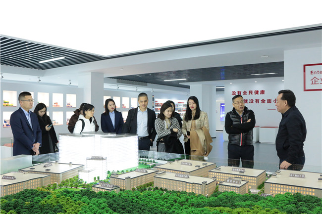 刘忠良董事长陪同牛和义总裁一行走进维康医药大健康产业园,参观了维康中药博物馆、企业展示中心和省重点企业研究院,介绍了hth体育网在新药研发、智能制造及医药大健康产业的重点布局。