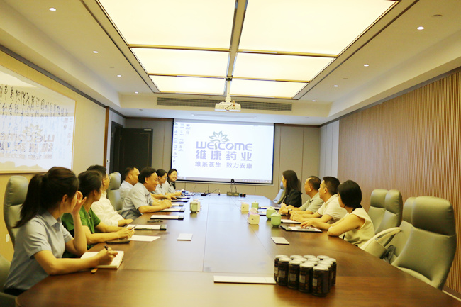 参观过后,双方在会议室深入交流。王毅青董事长表示,达嘉维康与hth体育网名字相近,产业布局类似,双方各有优势,此次本着相互学习的初衷来hth体育网拜访交流,希望未来双方深入合作,共同成长,让“维康”品牌被更多人熟知、认可。