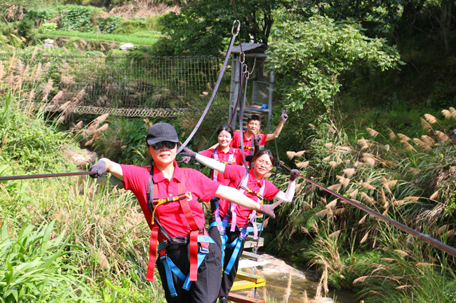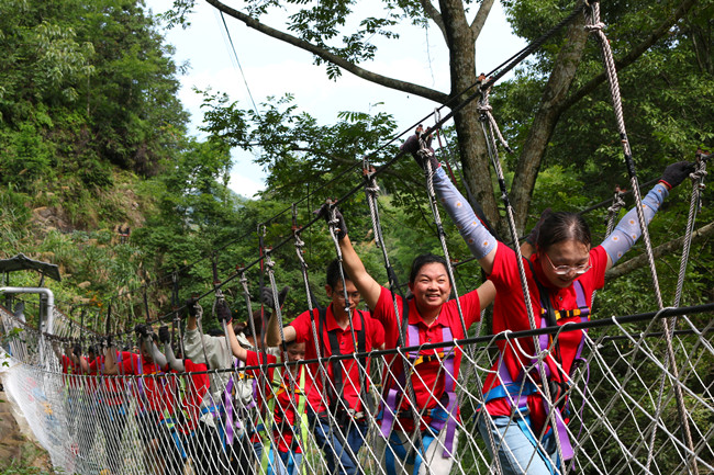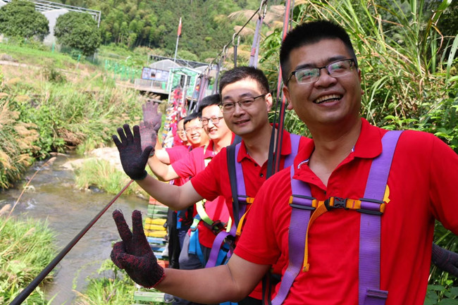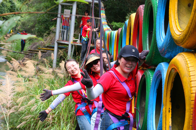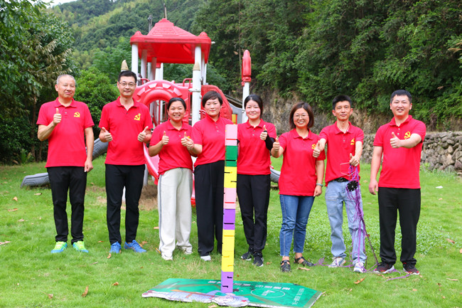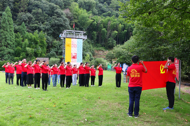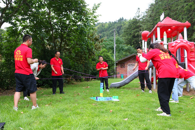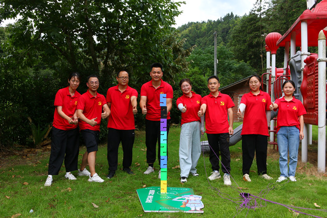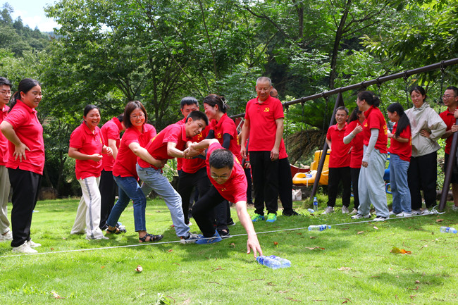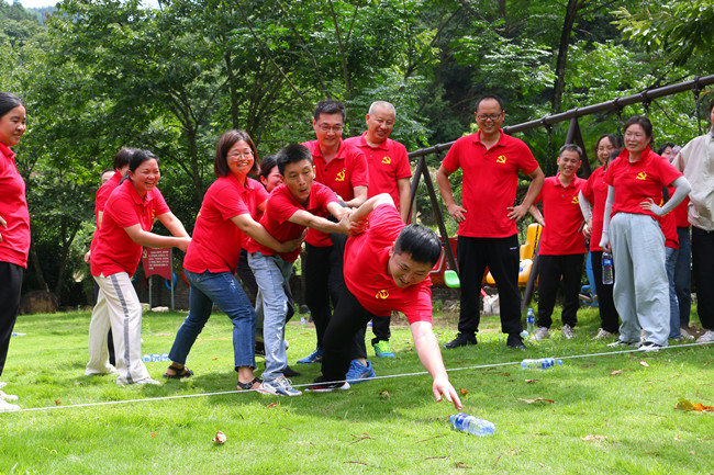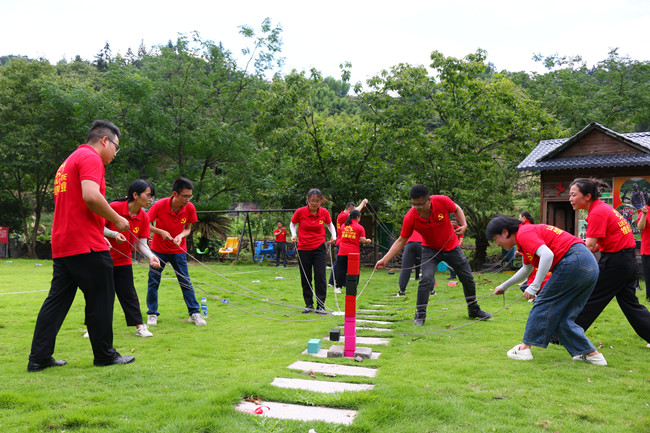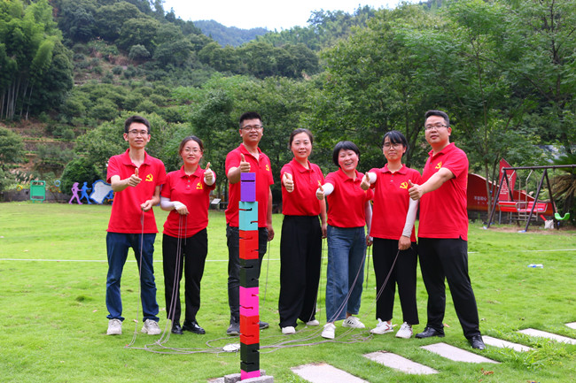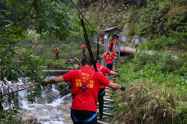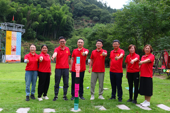 行走在当年红军挺进师曾经走过的利山古道,hth体育网的党员同志们体会着重走红军路的艰辛和光荣。大家来到模拟当年红军飞夺泸定桥的现场,铁索沿溪流峡谷逆流而上,耳畔是潺潺的流水声,仿佛隐隐约约有激烈的枪声和隆隆的炮火声,恍若回到了当年充满硝烟的战场,大家在不断闯关突破中深刻感受革命烈士的顽强拼搏和不屈精神;“雷区取水”、“合力建塔”环节,大家团结合作,默契配合,以优异的成绩证明这是一个朝气蓬勃、充满活力、干劲十足的团队!