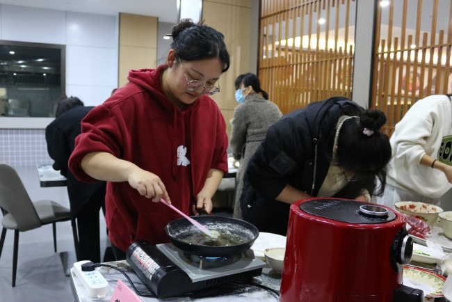 随着裁判一声令下,比赛正式开始。比赛现场,选手们有的和面,有的剁馅,有的擀皮,有的烹煮,有的摆盘,大家纷纷找到自己拿手的项目,展现着自己的身手。加油声,欢呼声,欢笑声,充斥着整个餐厅,比赛紧张而欢乐。