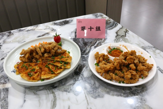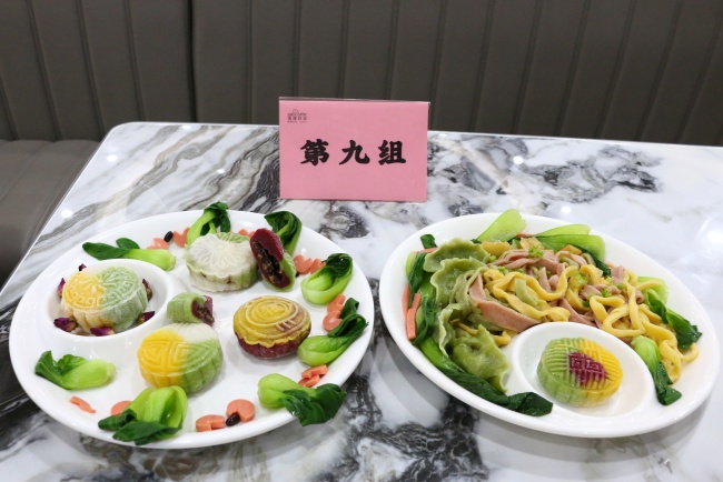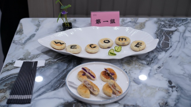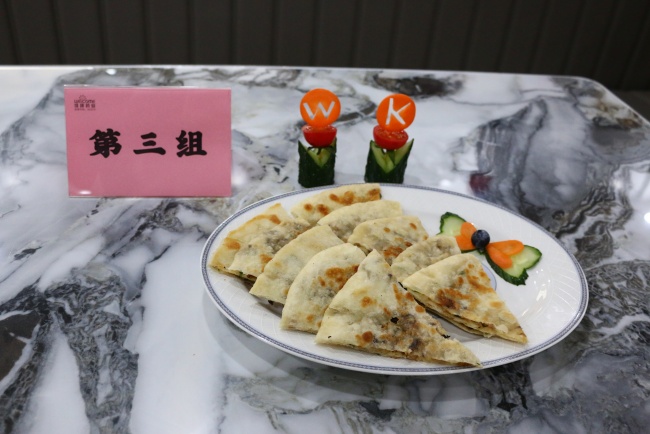 在激烈的制作环节后,终于来到令人期待的评分环节。参赛队伍纷纷呈上面食成品,由评委们从制作时间、美观程度、面食味道、现场洁净度、团队协助度等方面进行打分。