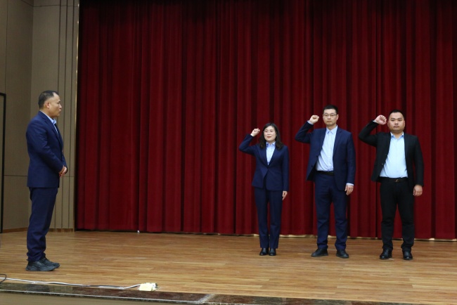 会上,新一批管理人员宣誓履职仪式庄严举行,3名新任管理人员向全体员工郑重宣誓:本人定当维护公司的各项规章制度,以推动公司的发展为己任,忠诚公司、勤奋工作,恪尽职守、勇于担当,求真务实、创先争优,服从大局、维护团结,公道正派、廉洁自律,奋发有为、不辱使命,为hth体育网服务,对hth体育网负责!铿锵有力的宣誓响彻会场,新血液为公司注入新力量,新力量助力明天更辉煌!
