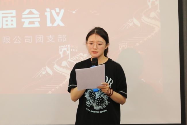 党委副书记朱婷作总结讲话,她首先肯定了上一届团支部的工作成绩,同时,也对新一届团支部提出了三点希望和要求:一要讲大局,增强角色意识,始终做到以党的旗帜为引领,注重实干,甘于奉献,勇于担当。二要讲学习,增强创新意识,用新知识、新理念,破解工作中的瓶颈;三要讲团结,增强协作意识,团干们要各司其职,相互沟通配合,形成一个融洽和谐,团结做事的良好作风。她希望新一届团干能充分接好青春的接力棒,发挥团建工作的引领作用,带领公司全体青年团员开拓创新、锐意进取,为公司的发展贡献青春力量。