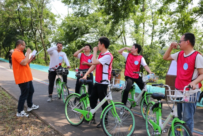 此次骑行活动5人一组,采用积分排名制。比赛共由两大板块组成:一是骑行闯关,从起点到终点之间共设10个关卡,比拼速度的同时,需要完成趣味挑战获得积分卡;二是智力PK,通过维康企业文化和大事记排序获得额外加分。只有速度与智慧兼具的队伍,才更有可能赢得本次比赛的胜利!本次活动共有19支队伍参与角逐。