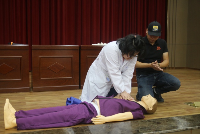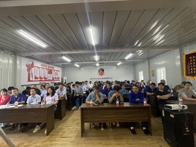 随后,全体人员在公司会议中心进行了救援知识主题培训。周磊秘书长从心肺复苏、AED使用、包扎技能等方面进行了详细讲解,并为大家演示和指导了操作流程。工程部经理兼安委会办公室主任助理赖兴隆详细讲解了微型消防站内所含物品及其使用方法,结合视频案例,生动地阐述了将消防救援知识内化于心,外化于行的重要性。