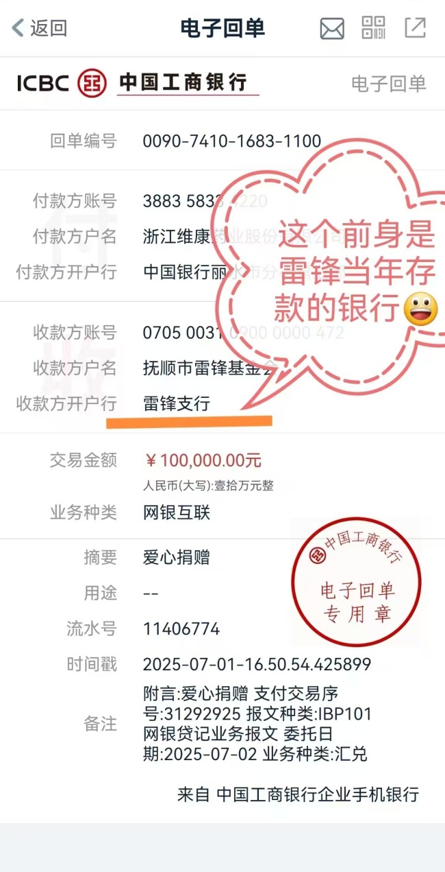 抚顺市雷锋基金会自1990年成立以来,以雷锋生前在雷锋支行的最后一笔100元存款为起点,广泛凝聚社会爱心力量,在扶贫济困、助学助教、灾害救助等领域持续发挥作用,成为传承雷锋精神的重要平台。值得一提的是,hth体育网的此次善款同样汇入雷锋支行,与雷锋当年的存款形成跨越时空的呼应,以企业之力赓续雷锋精神,让爱心薪火相传。