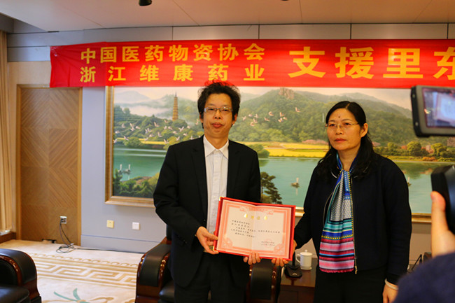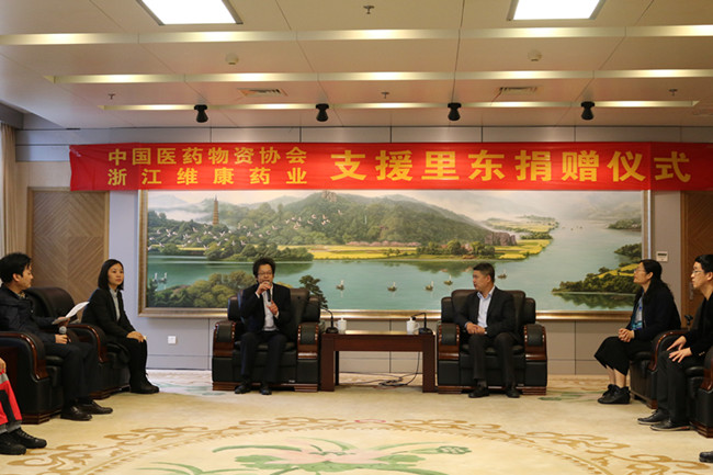 丽水市人民政府副秘书长王炜、丽水市红十字会副会长胡美芳、副书记雷月伟以及丽水市红十字志愿者救援队代表出席捐赠仪式,胡美芳副会长致感谢辞。她指出,天灾无情人有爱,中国医药物资协会、www.hth.com等爱心企业,用实际的行动诠释了企业的社会责任与人道、博爱、奉献的精神,她代表丽水市红十字会对中医医药物资协会、www.hth.com的慷慨解囊表示衷心的感谢。